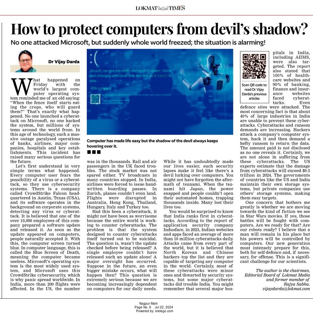 What happened on Friday with the world’s largest computer operating system reminded me of an old saying: “When the fence itself starts eating the crops, who will guard them?” That’s exactly what happened. No one launched a cyberattack on Microsoft, no one hacked the system, but millions of systems around the world froze. In this age of technology, such a massive outage paralysed operations of banks, airlines, major companies, hospitals and key establishments. This incident has raised many serious questions for the future.